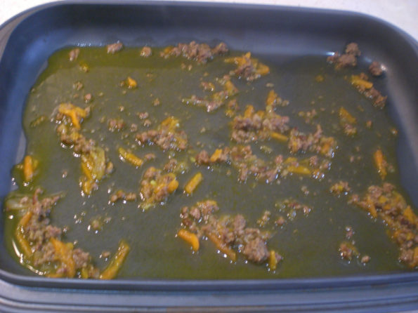 Una volta pronto usate il fondo di cottura per sporcare la teglia che utilizzeremo per cuocere le Taschine.