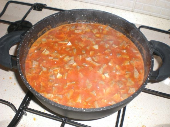 Ora che la passata bolle riduciamo la fiamma come dicevo per 20 minuti terminiamo la cottura.