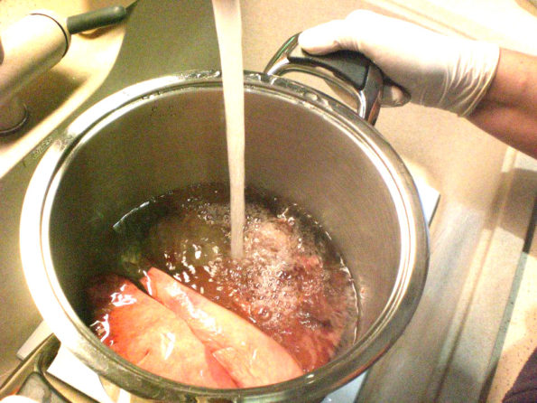 All’inizio laviamola con acqua fredda togliamo tutte le parti di grasso che vediamo immergiamola in acqua fredda e portiamola sul fuoco a bollire.
