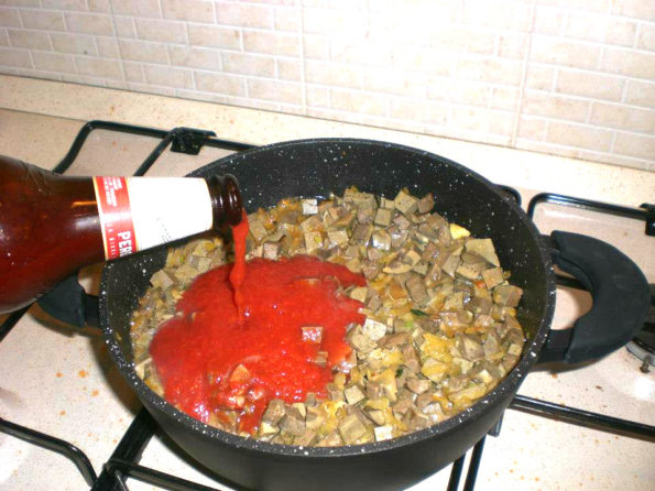 Premesso che deve piacere aggiungo il peperoncino lasciamo che si sciolga versiamo la passata di pomodoro e iniziamo la lenta cottura.