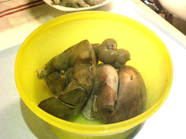 Riprendiamo la Coratella d’agnello ormai fredda.