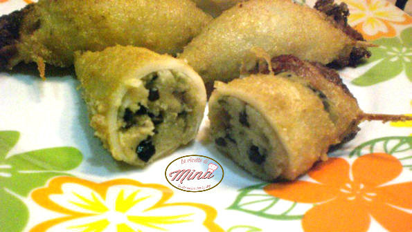per terminare i miei Calamari ripieni al forno adesso dobbiamo passarli nel pangrattato o se preferite nella mollica del pane, con la seconda opzione saranno molto più morbidi.