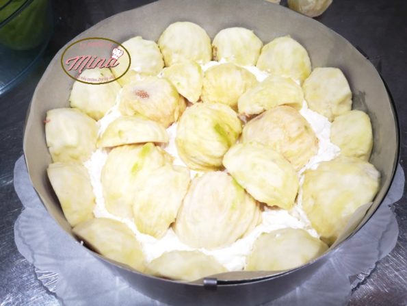 Versiamo la restante crema e livelliamo per poter poi decorare al meglio con gli spicchi di fichi.