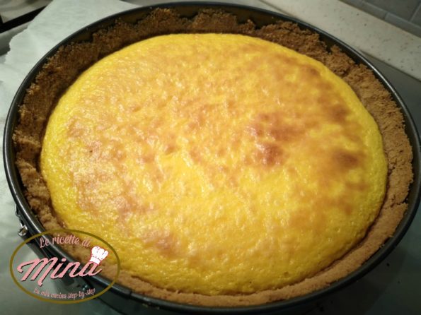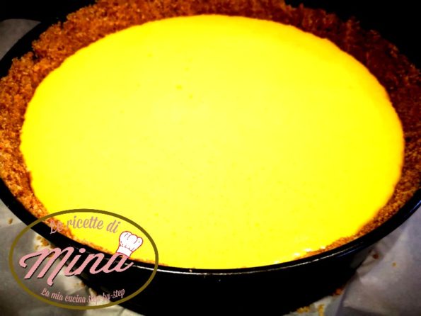 Livelliamo con un cucchiaio e inforniamo a forno spento mi raccomando non preriscaldatelo, o la superficie della Cheesecake alla zucca vi si spaccherà tutta.