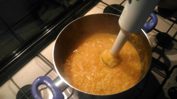 Frulliamo con un frullatore ad immersione e lasciamo riposare la crema.