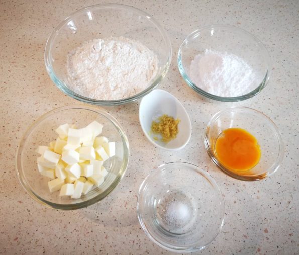La prima cosa da realizzare è la frolla, io mi sono preparata in anticipo tutti gli ingredienti per farveli vedere.