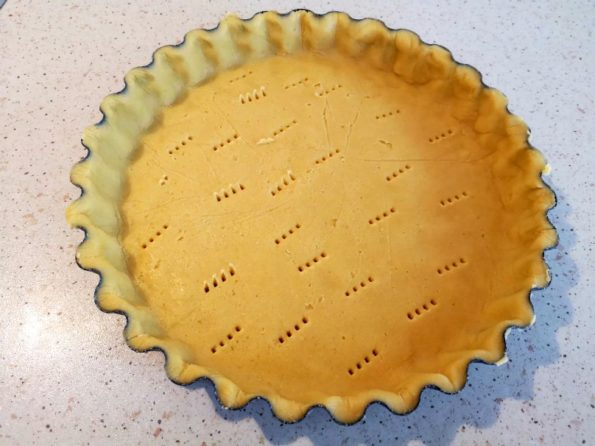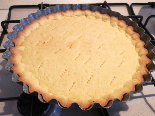 La lemon curd è pronta, andiamo a stendere la frolla, molto velocemente stendiamola e bucherelliamo il fondo.