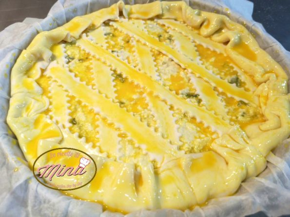 Potete notare dalla foto che io ho fatto nascondere internamente i lembi delle striscioline in modo che in cottura sia più ordinato.