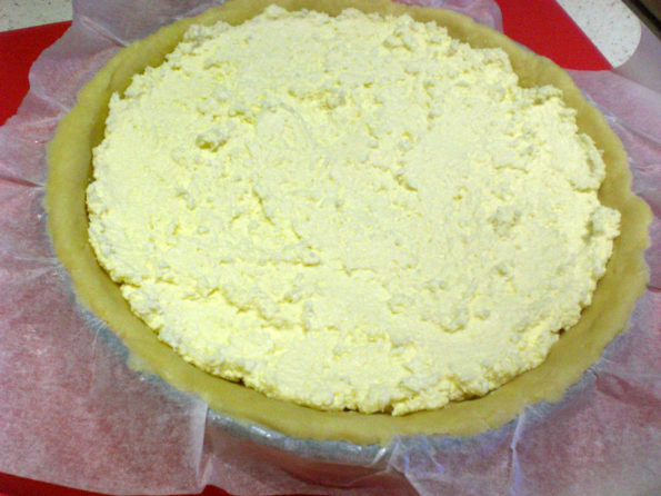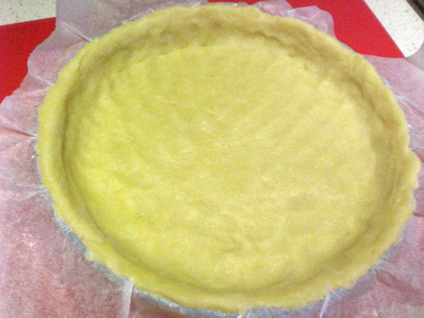 Riprendete l’impasto dal frigo e versatela sulla frolla livellando bene.