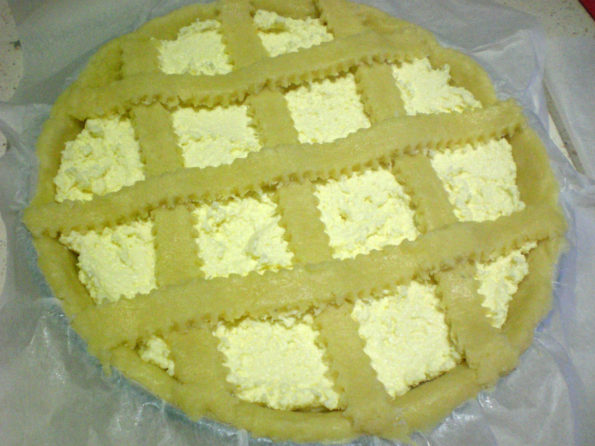 Facciamo con la restante frolla le classiche striscioline, e siamo pronti per andare in forno, 180° per 45 minuti.
