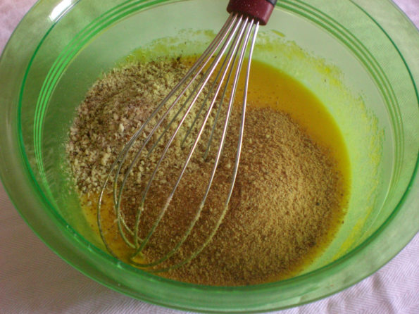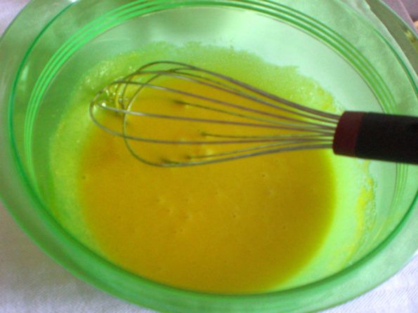 Impastiamo con una frusta i tuorli e lo zucchero avendo cura di scioglierli bene.