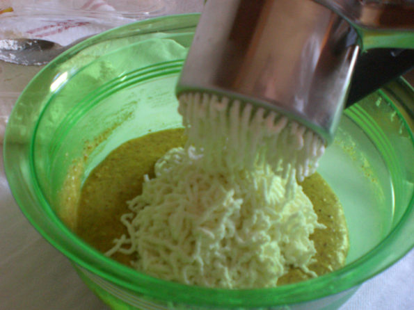 Aggiungendo la ricotta ed amalgamando bene ecco il risultato.