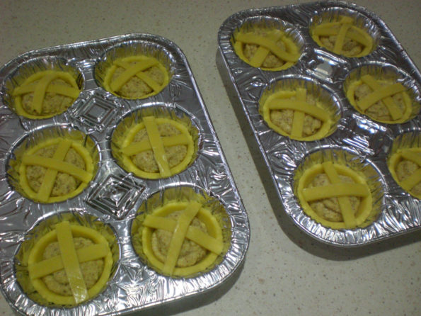 Mettete il ripieno e aggiungete due striscioline per la decorazione, il gioco e fatto, le crostatine golose sono pronte per andare inforno.