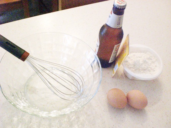 Usiamo una frusta per evitare grumi e mettiamoci al lavoro, iniziamo dalle uova sale e lievito e farina poco per volta alternando con la birra, iniziamo ad amalgamare.