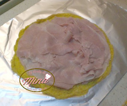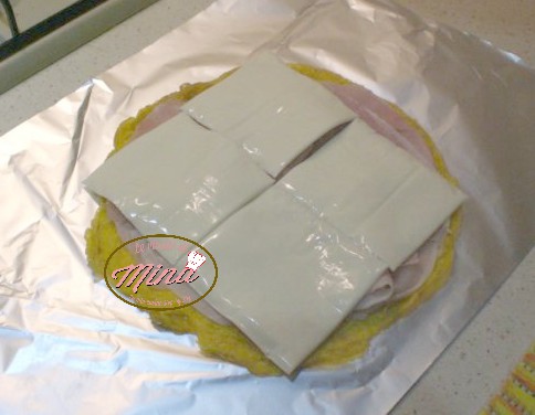 Dopo aver messo il prosciutto cotto in abbondanza, aggiungete anche la sottiletta, come vedete qui sotto.