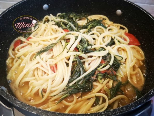 Ci vorrà poco 5 minuti circa e in contemporanea lessate le linguine e versate gli agretti nel condimento.