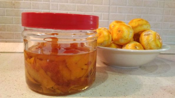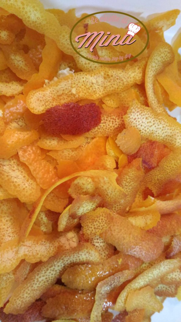 Ora che le bucce sono pronte facciamo la stessa cosa con le arance e poi ci procuriamo un barattolo che li possa contenere che abbia una chiusura ermetica.