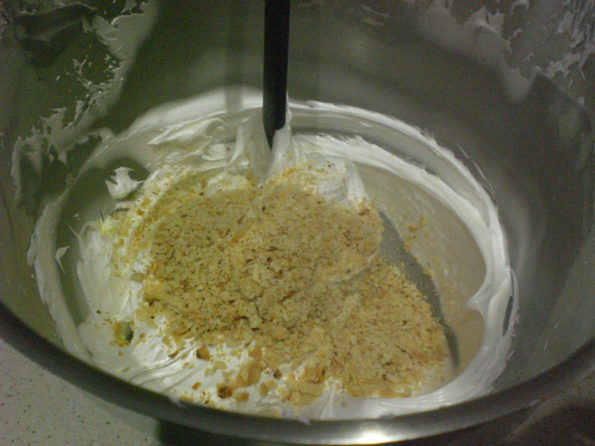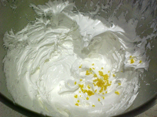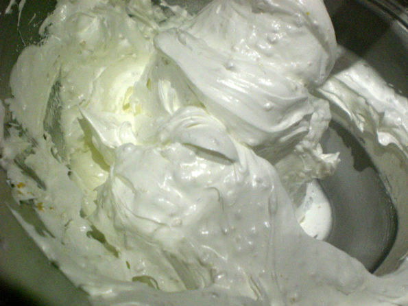 Aggiungiamo il succo di limone ai due ingredienti e montiamo a neve molto ferma per 20 minuti.