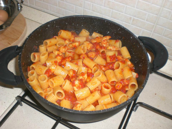 Di seguito, il mio piatto di Mezze maniche con gamberoni.