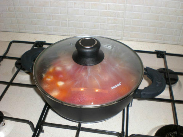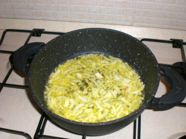 Copro e lascio cuocere dolcemente, nel frattempo mettiamo a bollire l’acqua per le mezze maniche.