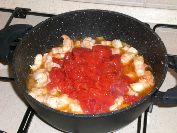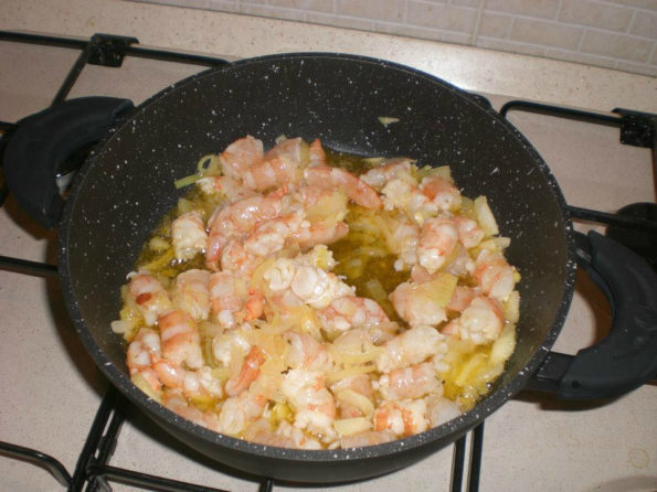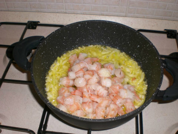 Verso i gamberoni e lascio 2 minuti insaporire, aggiusto di sale.