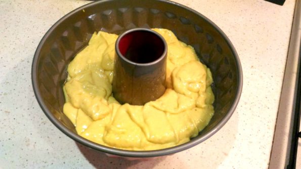 Ora prendiamo uno stampo, liscio, intagliato, come volete, l’importante e che abbia il buco al centro e che sia alto, versiamo all’interno il composto.