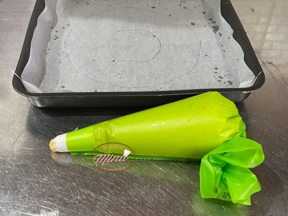Bisogna disegnare su un foglio di carta forno la circonferenza ed ho tracciato un altro cerco al centro di circa 10 centimetri.