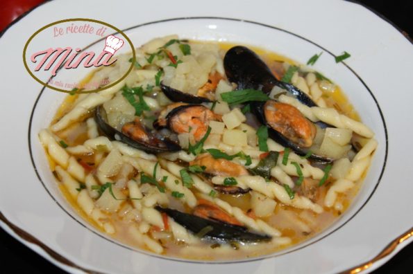 Pasta cozze e patate alla Mina, io me le sono fatte così, e vi dico che mi sono leccata i baffi.