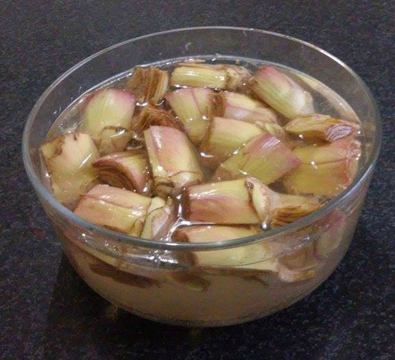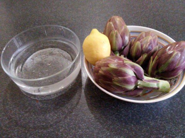 Partiamo con il pulire i carciofi, ed immergerli in acqua e limone per non farli diventare neri.