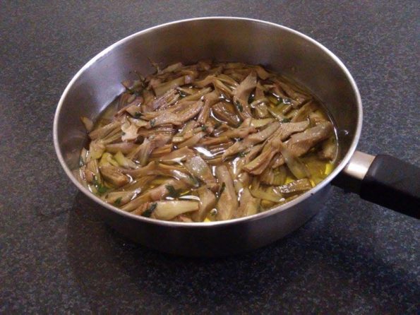 L’olio e abbondate perchè sarà tutto il condimento che daremo alle mie Pennette carciofi e mozzarella.