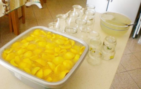 Vi servono solo tanti limoni, zucchero e pesche, ovvio dei barattoli sterilizzati e dell’acqua.
