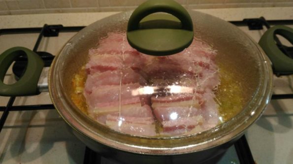 Dopo 10 minuti aprite il coperchio e con un cucchiaio versate sopra il liquido di cottura che si è formato compreso di soffritto.