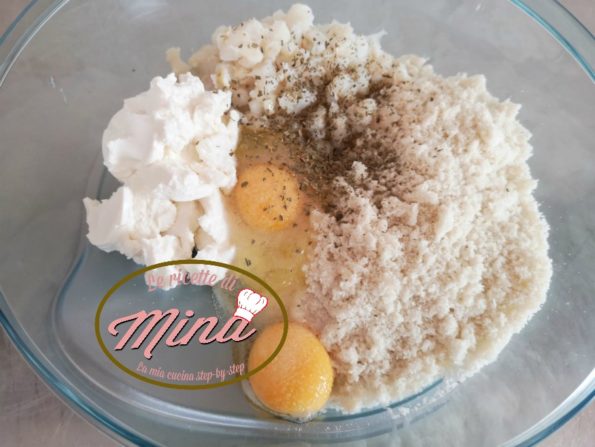 In una ciotola versiamo tutti gli ingredienti ad eccezione del pane grattugiato che ci serve per la fine.