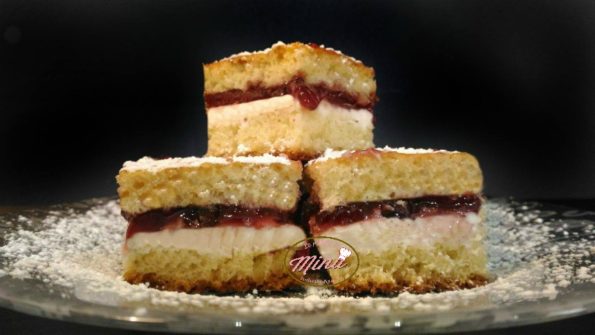Prima di servire tagliamo a quadratini e cospargiamo di zucchero a velo.