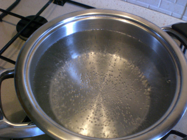 Lessiamo il riso in acqua salata e lo scoleremo quando è molto al dente.