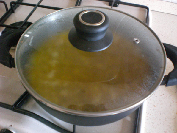 A questo punto non ci resta che versare il brodo di dado vegetale, ricoprendo bene tutto il composto.