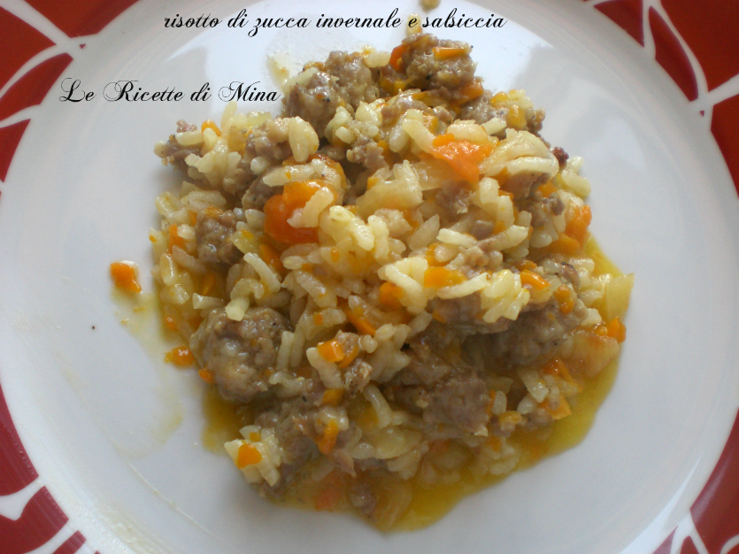 eccolo il mio Risotto zucca e salsiccia servitelo ancora caldo. Spero vi abbia fatto venire la voglia di un bel piatto di questa ricetta, vi aspetto numerosi con i commenti Mina e seguitemi anche su facebook cliccando qui