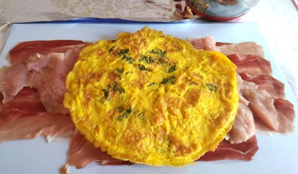Sulla frittata mettiamo l’ultimo ingrediente come vedete.