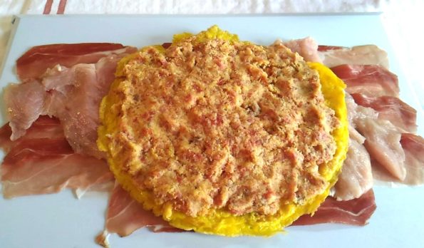 Poggiamo sopra adesso la frittata, noterete che non mettiamo condimento tra uno strato e l’altro.