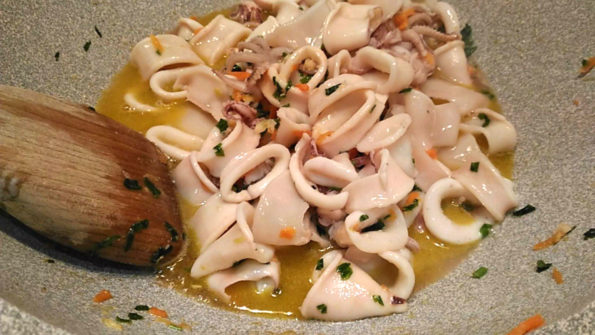 Sagne e ceci con il pesce, uniamo il mare con la collina, con il pesce con i ceci.