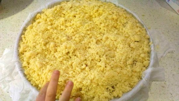 Adesso sbriciolate la parte restante dell’impasto in modo sempre omogeneo.