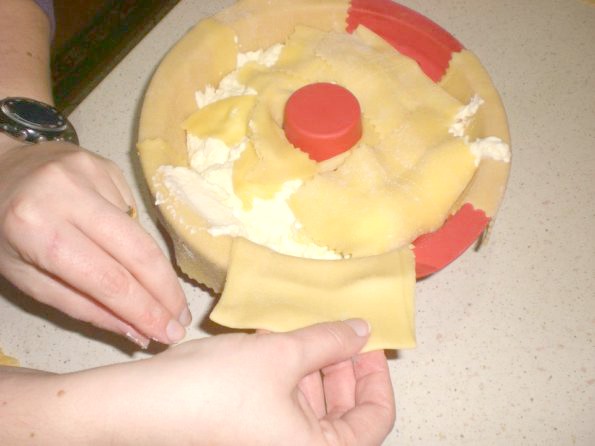 Prendiamo il ripieno e lo versiamo all’interno della nostra forma.