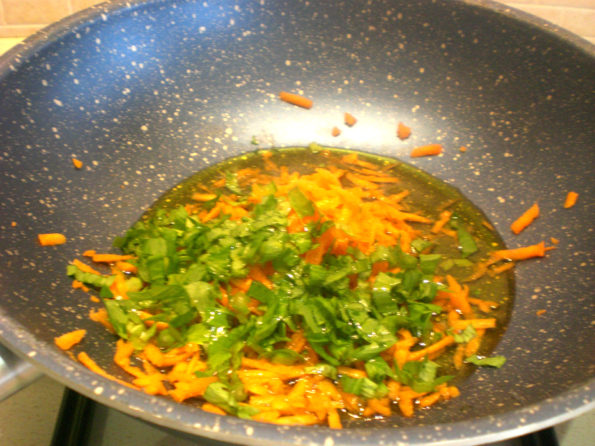 In una teglia grattugiate o tritate la carota, stessa cosa per il sedano, versate l’olio extra vergine di oliva e portate sul fuoco.