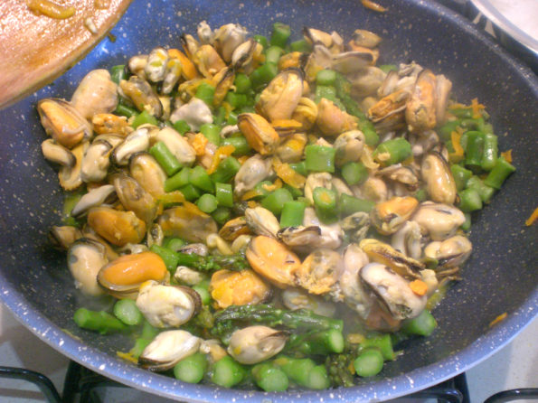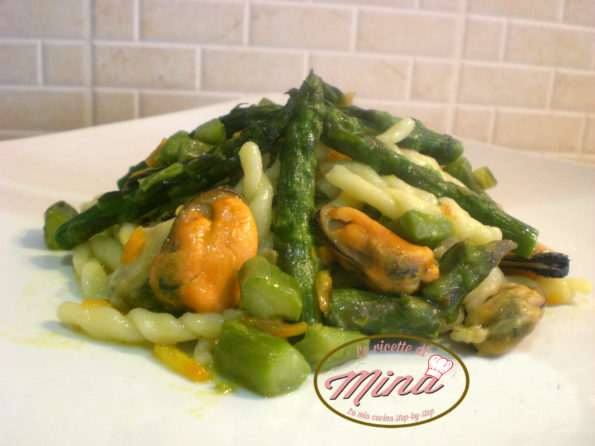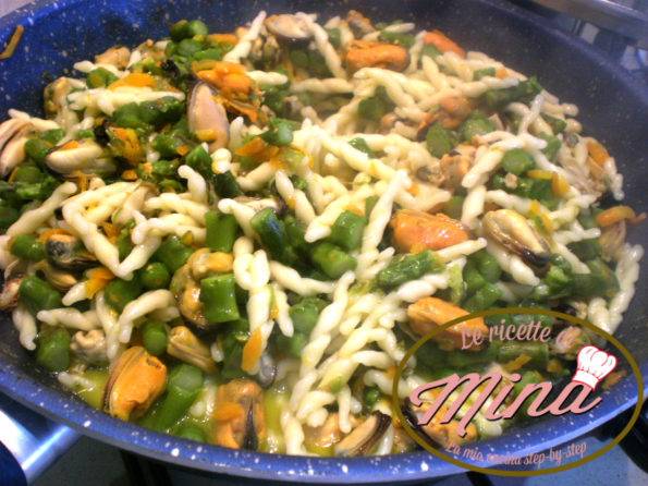 Ed ecco a voi i miei Strozzapreti asparagi e cozze, un piatto colorato che mette allegria, buonumore e appetito.