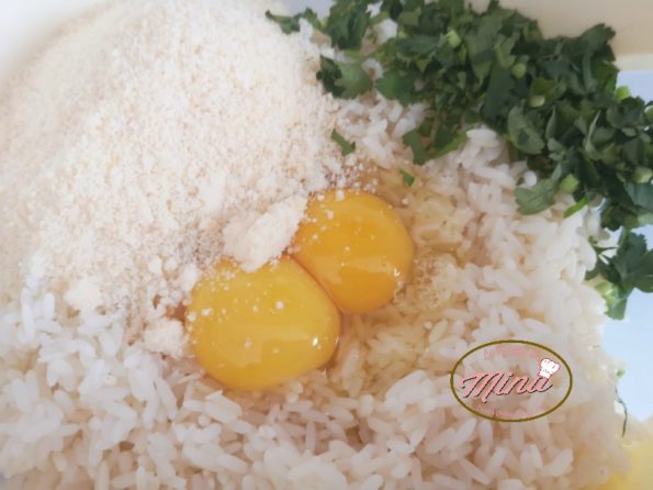 Aggiungeteci le uova, il prezzemolo tritato e il formaggio grattugiato, mescolate bene e lasciate riposare 5 minuti.