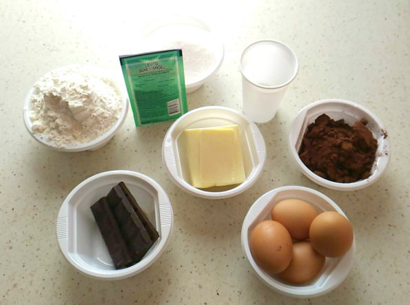 Prepariamo tutti gli ingredienti e un bicchiere di plastica che sarà la nostra unità di misura.