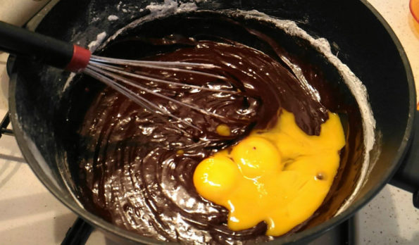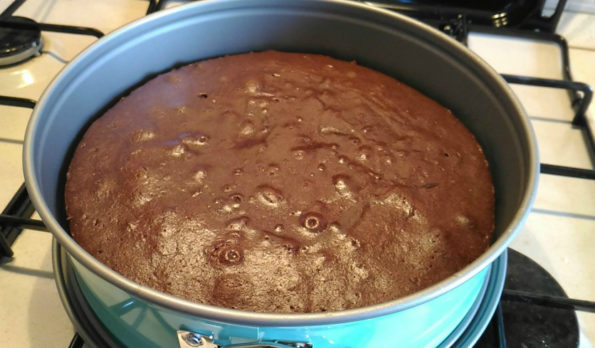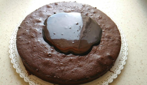 La torta al cioccolato della mia mamma inizia a prendere vita, ma non abbiamo terminato.