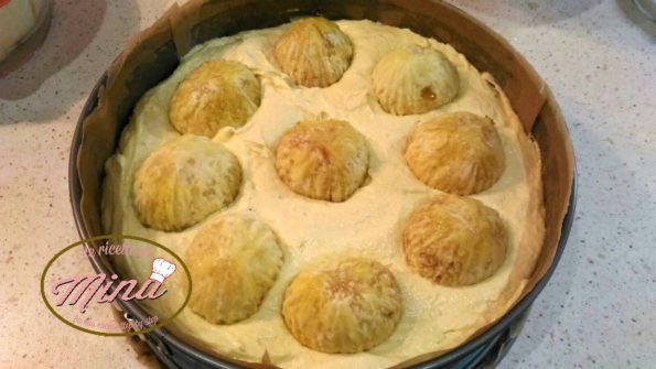 Sbuccio i fichi e li sistemo facendoli scendere leggermente dentro l’impasto.