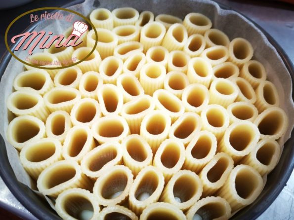 In questo modo tutti i rigatoni saranno riempiti e in cottura cresceranno rendendo la torta ripiena.