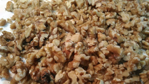 Sminuzziamo grossolanamente le noci a coltello, giusto per non mettere i gherigli interi.